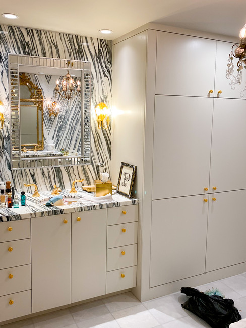 An unexpected feature in a master bath for a client that likes to stand up and not lean over the counter to do her make-up. Got a unique request? We've got a solution for that!